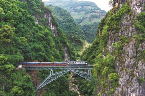 On a hilltop in Yunnan province, campers can frequently hear the whistles and humming of train engines, as trains slowly make their way through the mountainous terrain on the narrow-gauge tracks.