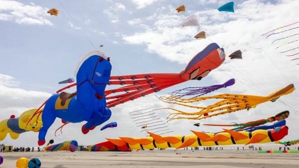 On April 20, a beach in France was filled by people and kites flying in the sky from 25 countries and regions.