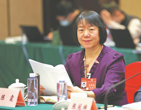Chen Xia, researcher at the Institute of Philosophy of the Chinese Academy of Social Sciences, during this month's second session of the 14th National Committee of the Chinese People's Political Consultative Conference. [Photo by ZOU HONG/CHINA DAILY]