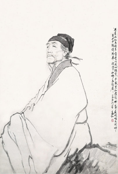 A portrait of ancient poet Du Fu is one of the signature works by Jiang Zhaohe (1904-89) at the ongoing exhibition Gazing Into the Vast Expanse in Beijing. [Photo by TAIKANG ART MUSEUM/CHINA DAILY]
