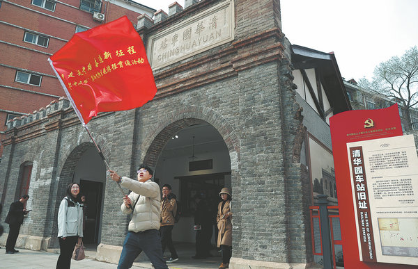 A ceremony is held to celebrate the launch of the new travel route at Qinghuayuan Railway Station, one of the key sites on the route, on March 25. [Photo by Zou Hong/China Daily]