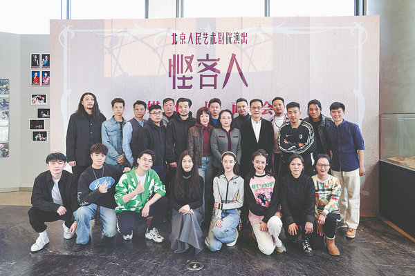 The creative team of the play at the news conference at the Beijing People's Art Theatre. [Photo provided to China Daily]