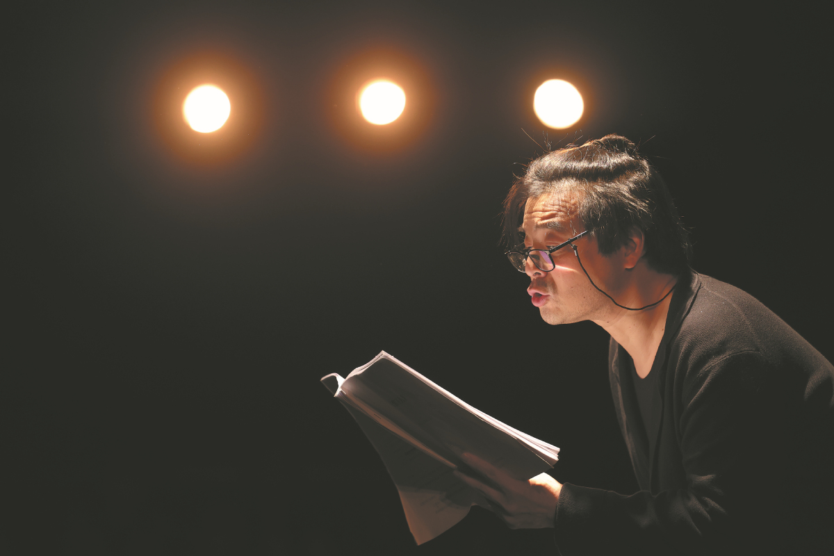 Fu Jia, who plays Harpagon, reads from the script of The Miser. [Photo provided to China Daily]