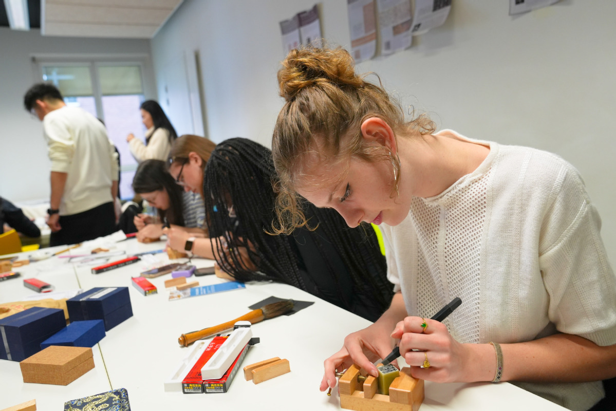 Laurent Long, a PhD graduate in Sinology from the National Institute for Oriental Languages and Civilizations in Paris, said that some Sino-French cultural exchange institutions had hosted calligraphy and seal-carving exhibitions and lectures for the people in France, but it was the first time that calligraphy and seal-carving interactions were provided on his campus.